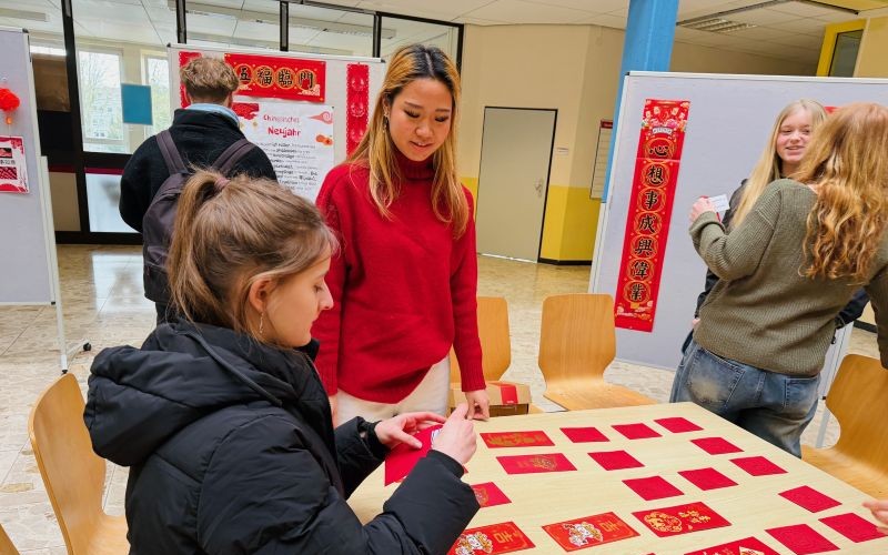 Bei unserer diesjährigen Frühlingsfest-Feier war das Ziel, die Schülerinnen und Schüler stärker zu beteiligen. Alle sollten die Möglichkeit haben, typische Bräuche zum Frühlingsfest selbst auszuprobieren, um die traditionelle chinesische Kultur unmittelbar zu erleben.