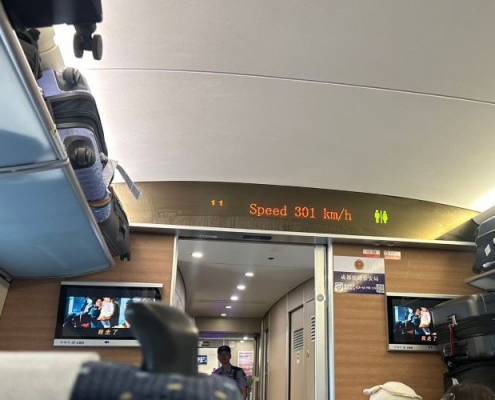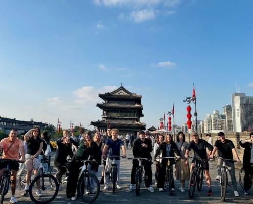 Am Freitag fuhr die Gruppe mit dem Schnellzug weiter nach Xi’an. Schon die Ankunft in der alten Kaiserstadt war beeindruckend: moderne Hochhäuser stehen dort direkt neben historischen Gebäuden.