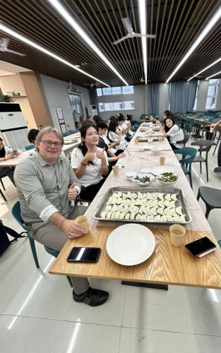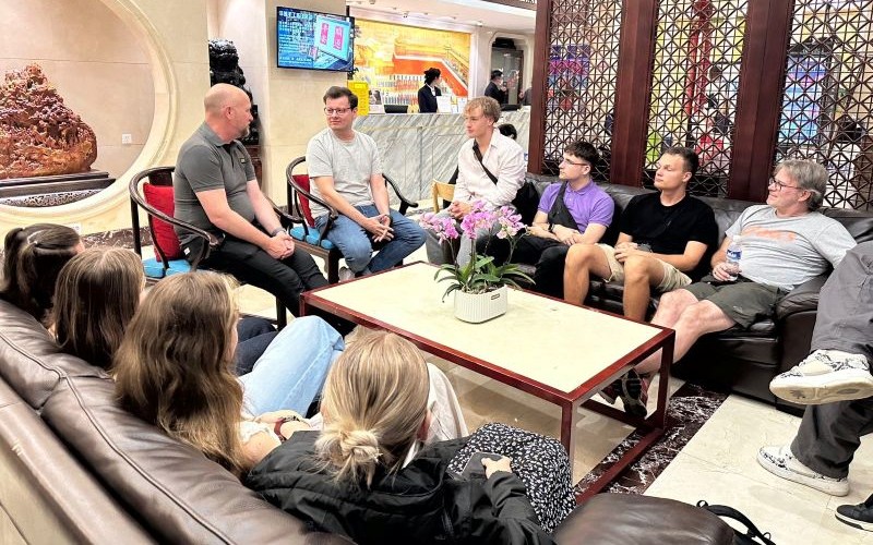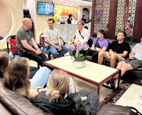 Am letzten Abend in Peking konnten die Teilnehmerinnen und Teilnehmer mit Wojciech Hoppe einen ehemaligen Schüler unseres Beruflichen Gymnasiums kennenlernen, der 2016 mit der Studienfahrt der BBS 1 in China war und mittlerweile dort studiert. Er gab einem kurzweiligen Bericht über das Leben und Studium an einer chinesischen Universität. Alle konnten viele Fragen stellen, die geduldig beantwortet wurden. Vielen Dank für die Einblicke in den Alltag in China und die Tipps für die Zukunft.
